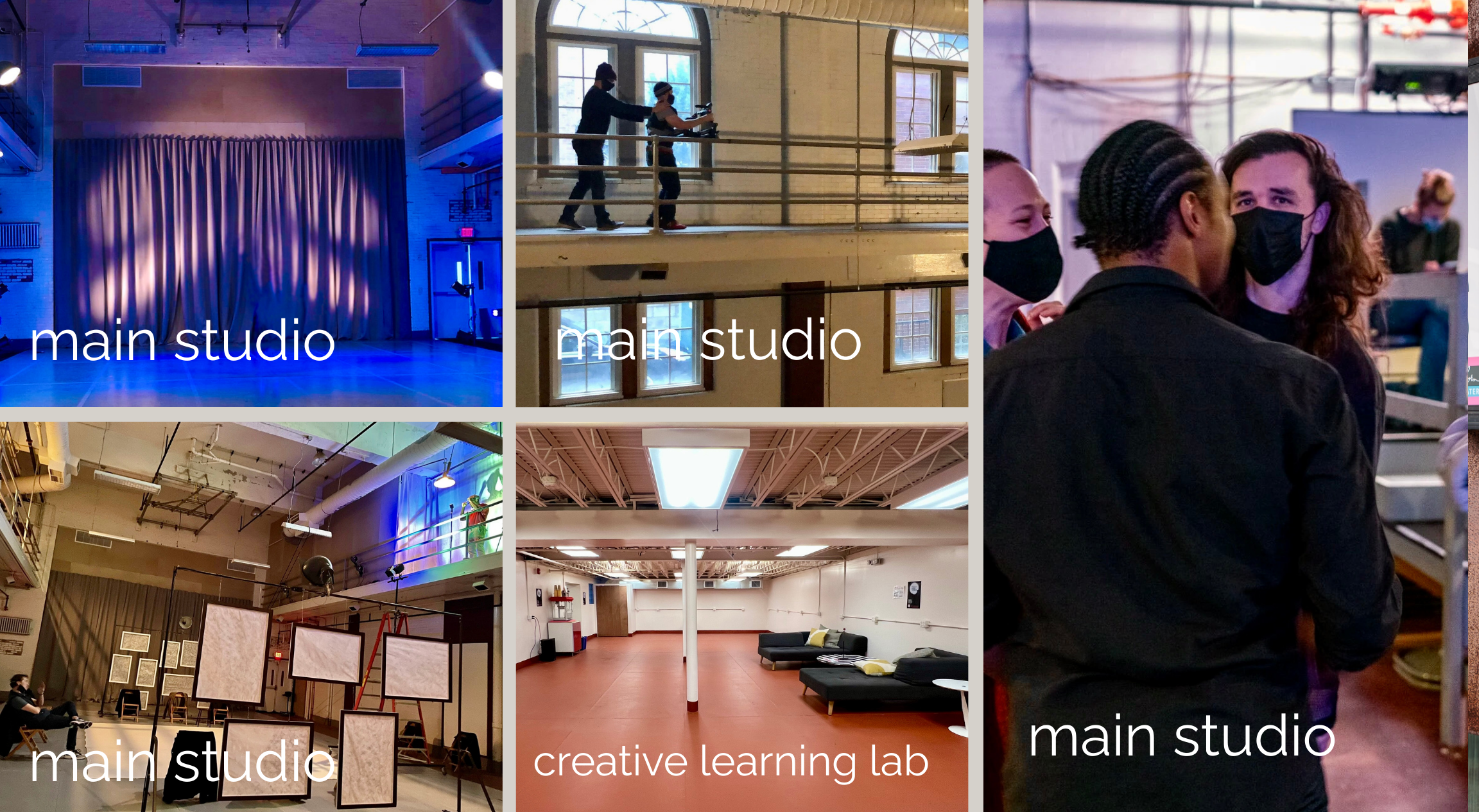 Our 1,000-square-foot Creative Learning Lab offers flexible space for artists to experiment, rehearse, and advance their practice. This space has audio capabilities using a single TS410 speaker accessible via bluetooth and AUX. The capacity for movers in this space is 20.